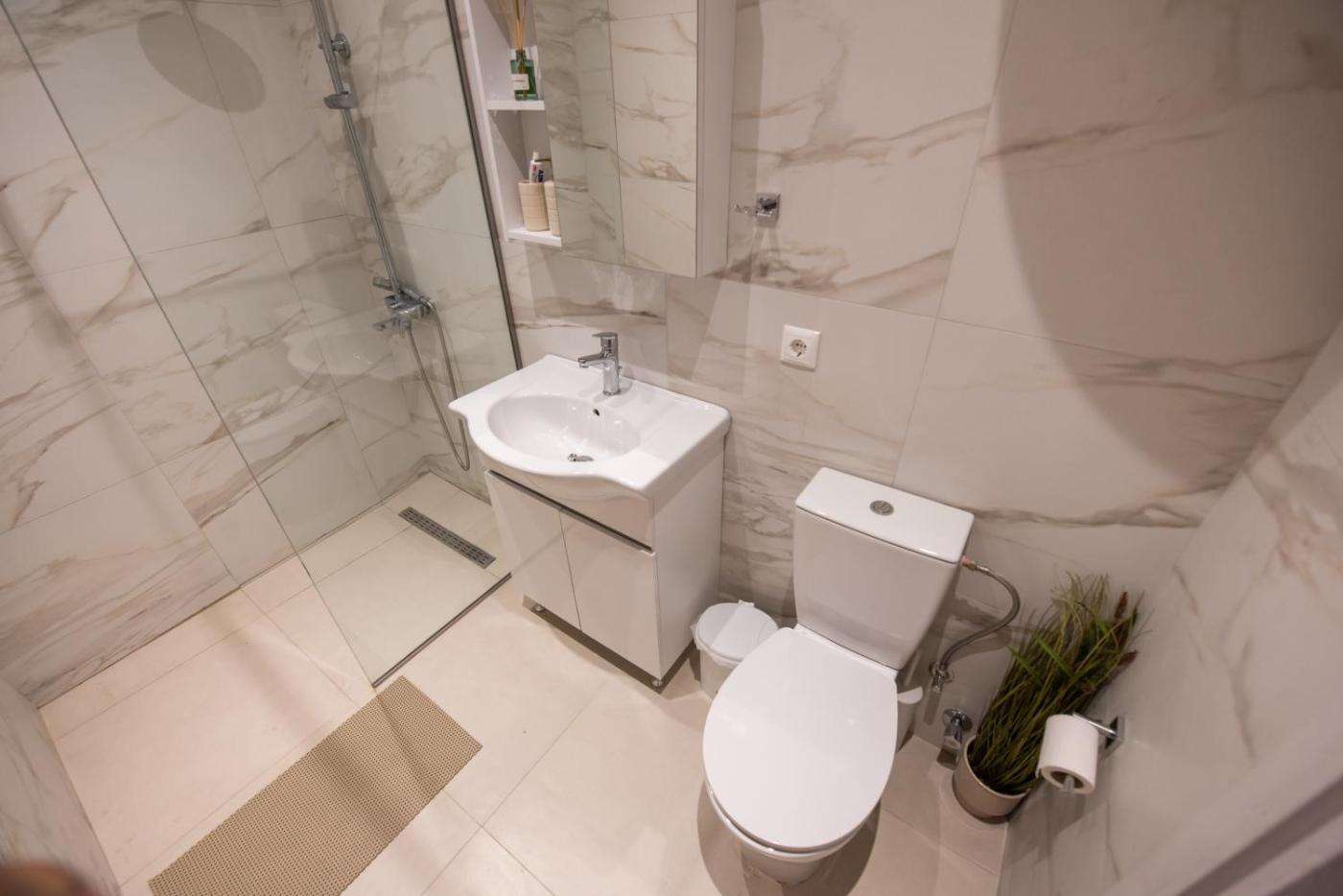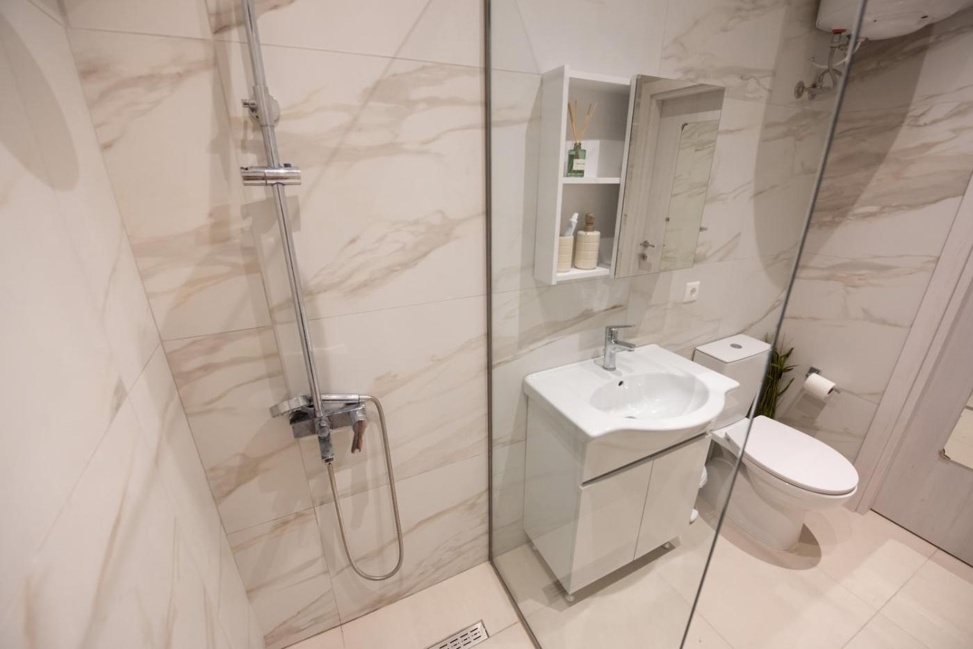 One-Bedroom Apartment. Featuring a private entrance, this air-conditioned apartment is comprised of a kitchen, 1 bedroom and 1 bathroom with a shower and a hairdryer. The apartments kitchen is available for cooking and storing food. The apartment features tiled floors, a seating area with a flat-screen TV, a wardrobe, a sofa, as well as heating. The unit offers 1 bed.